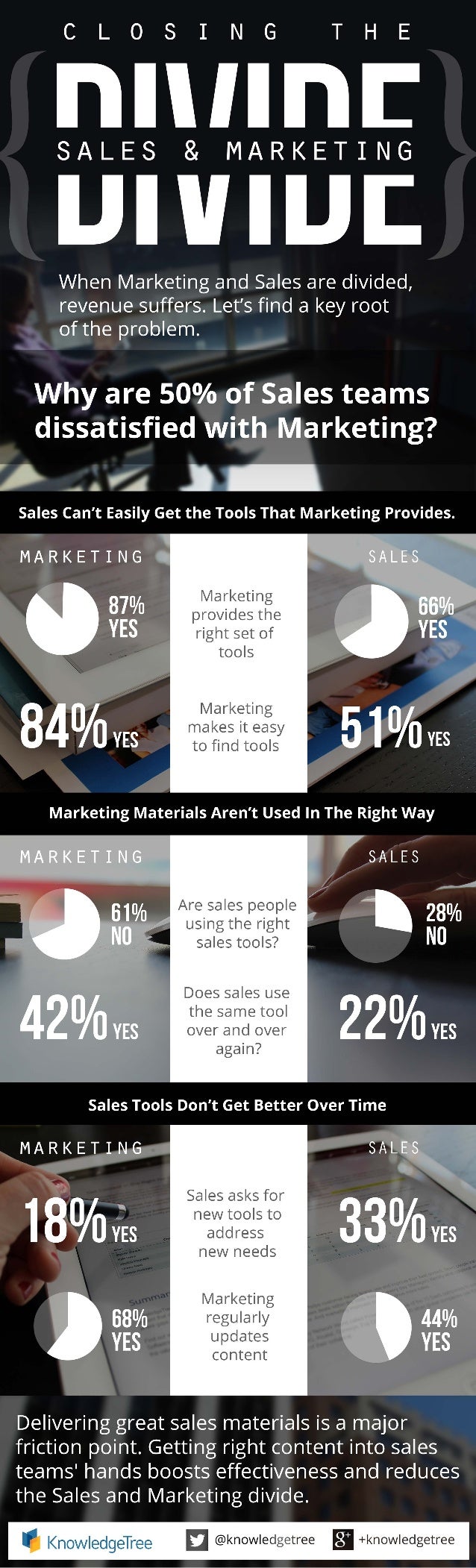 According to a study by Knowledge Tree, across all organizations half of sales teams are dissatisfied with the support they receive from their peers in other areas of marketing. The disconnect usually revolves around collateral, a marketing term that refers to flyers, fact sheets, presentation materials etc.